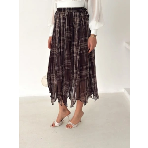 Plaid Baskılı Astarlı Şifon Etek