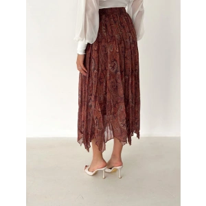 Paisley Baskılı Astarlı Şifon Etek