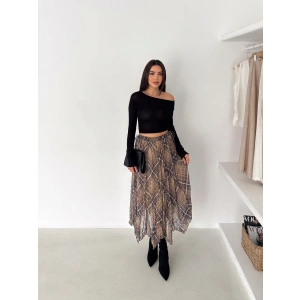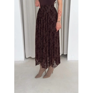 Kahve Flok Tüllü Astarlı Etek