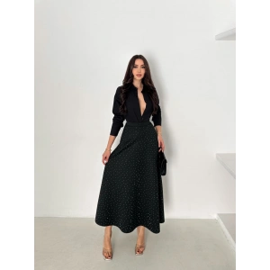Siyah Taş İşlemeli Scuba Etek