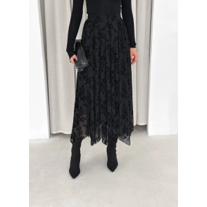 Siyah Flok Tüllü Astarlı Etek