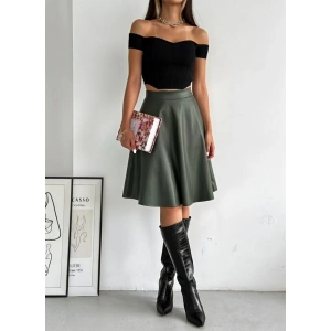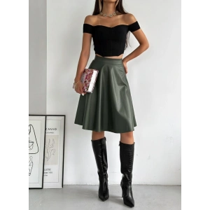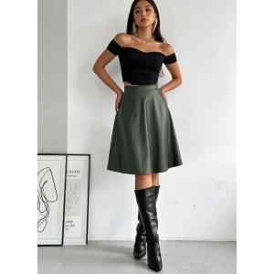 Haki Deri Kloş Etek