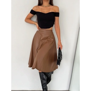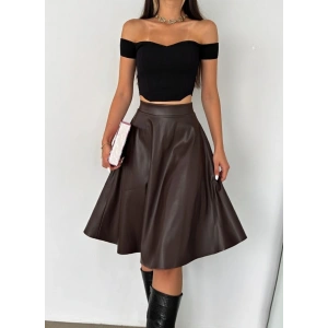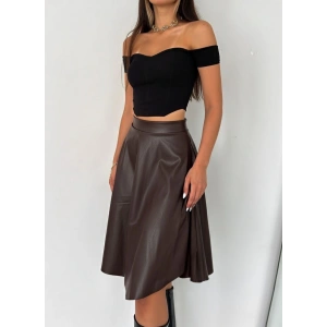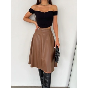 Kahve Deri Kloş Etek