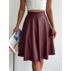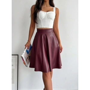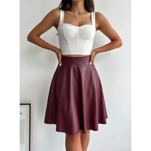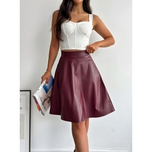 Bordo Deri Kloş Etek