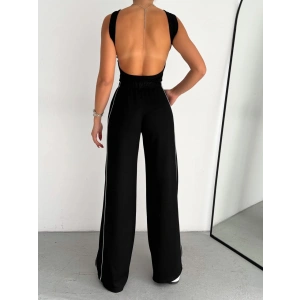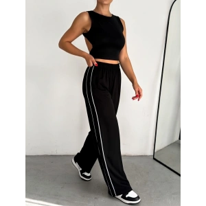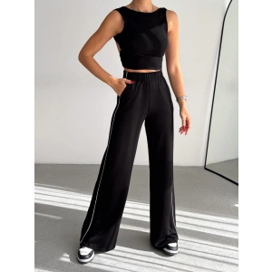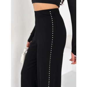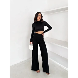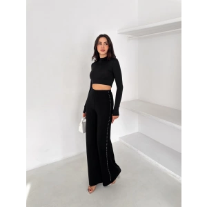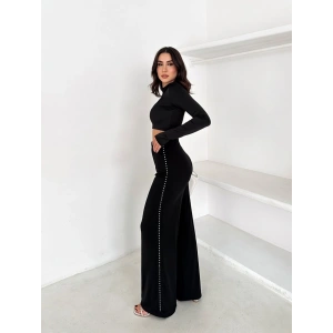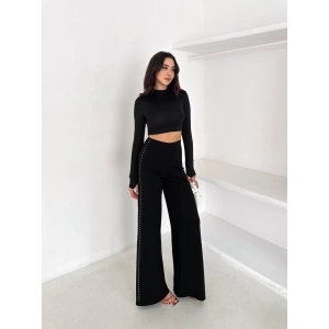 Siyah Yandan Taşlı Bol Paça Pantolon