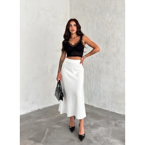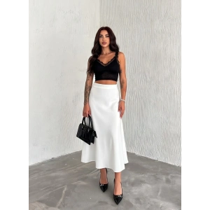 Beyaz Scuba Puf Uzun Etek