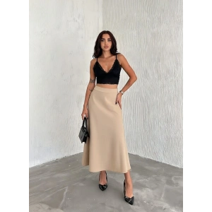 Bej Scuba Puf Uzun Etek