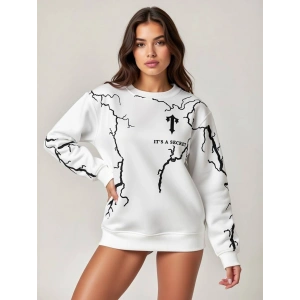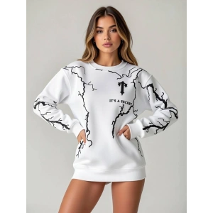 Beyaz Secret Üç İplik Oversize Sweat