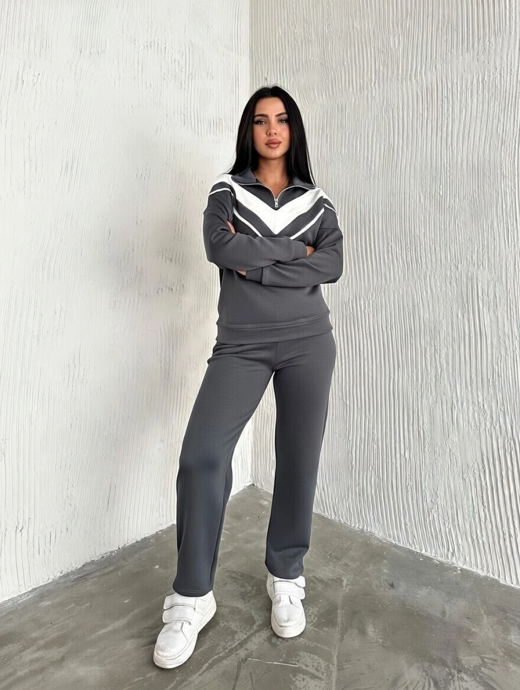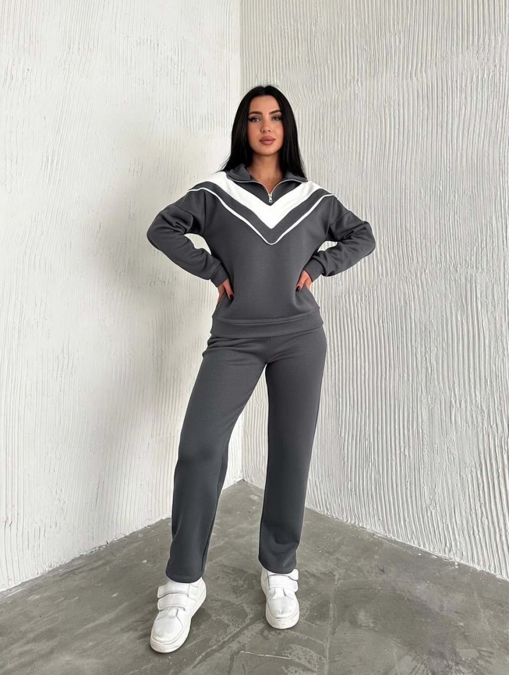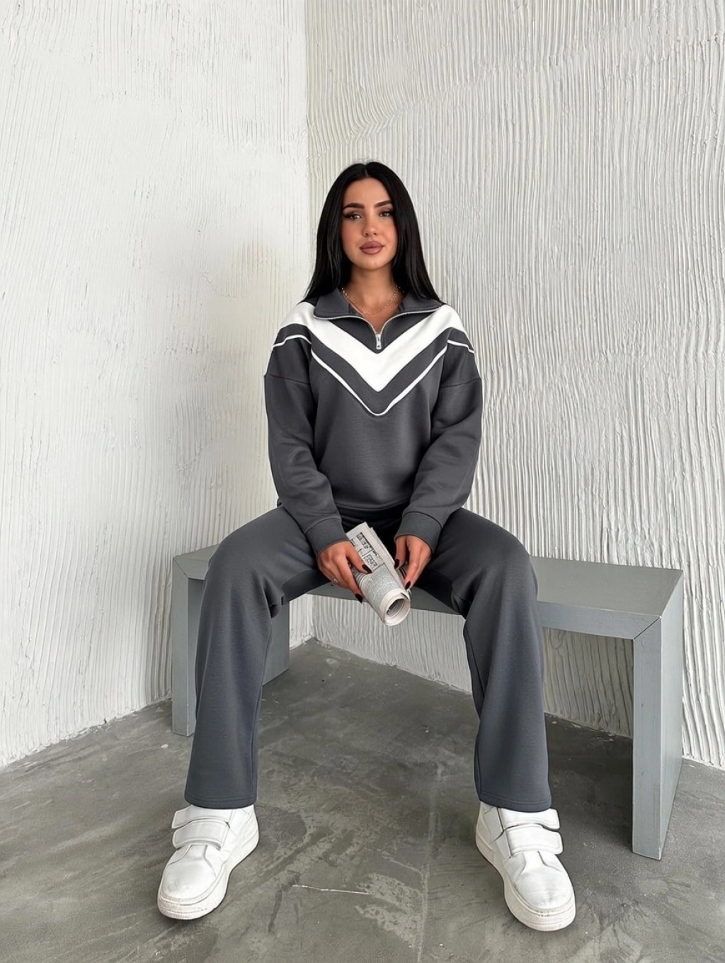 Modaskop'un antrasit şardonlu modal garnili eşofman takımı, rahat ve şık kombinler için ideal seçimdir.