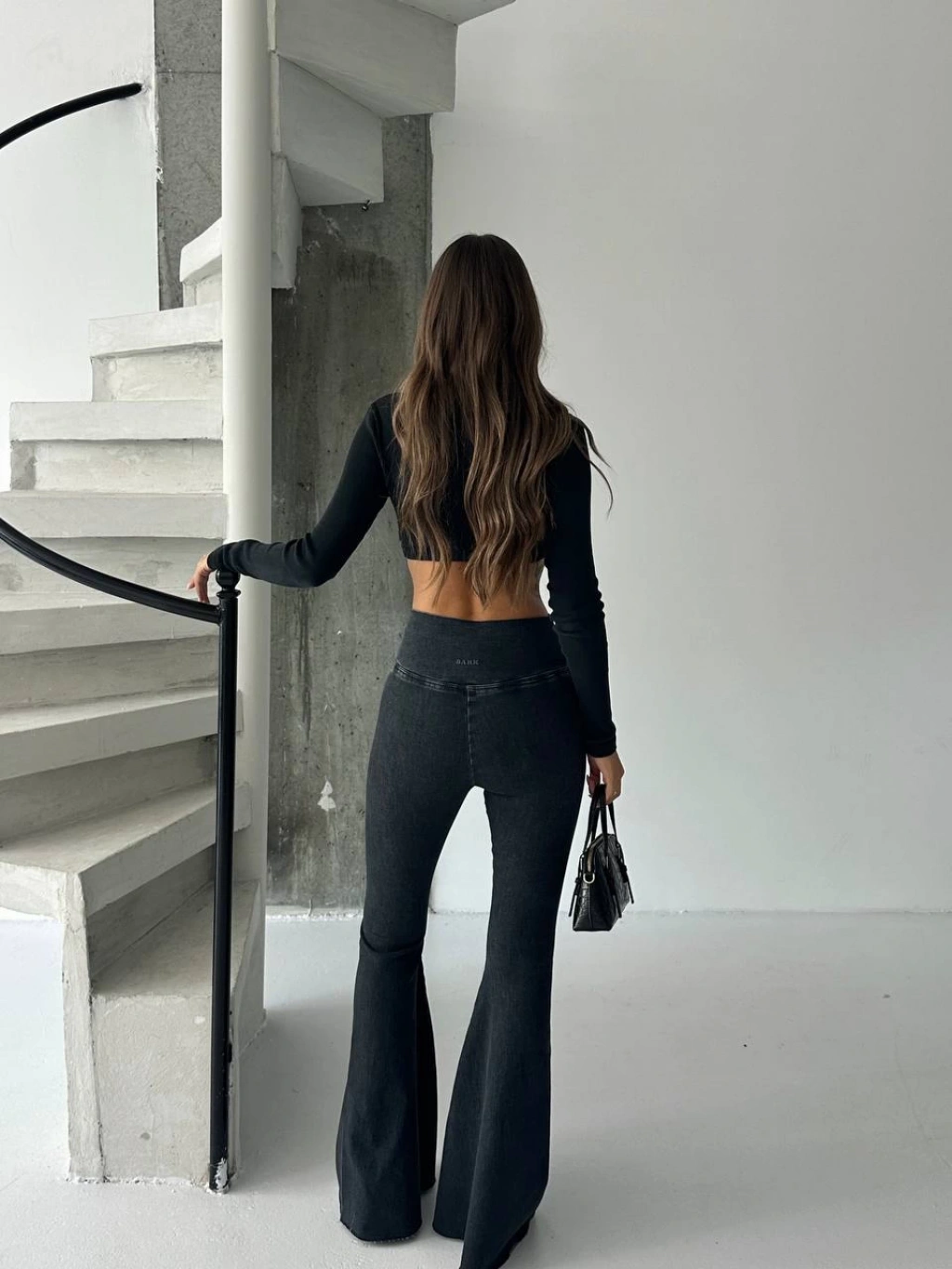 Antrasit İspanyol Paça Yüksek Bel Jean Tayt