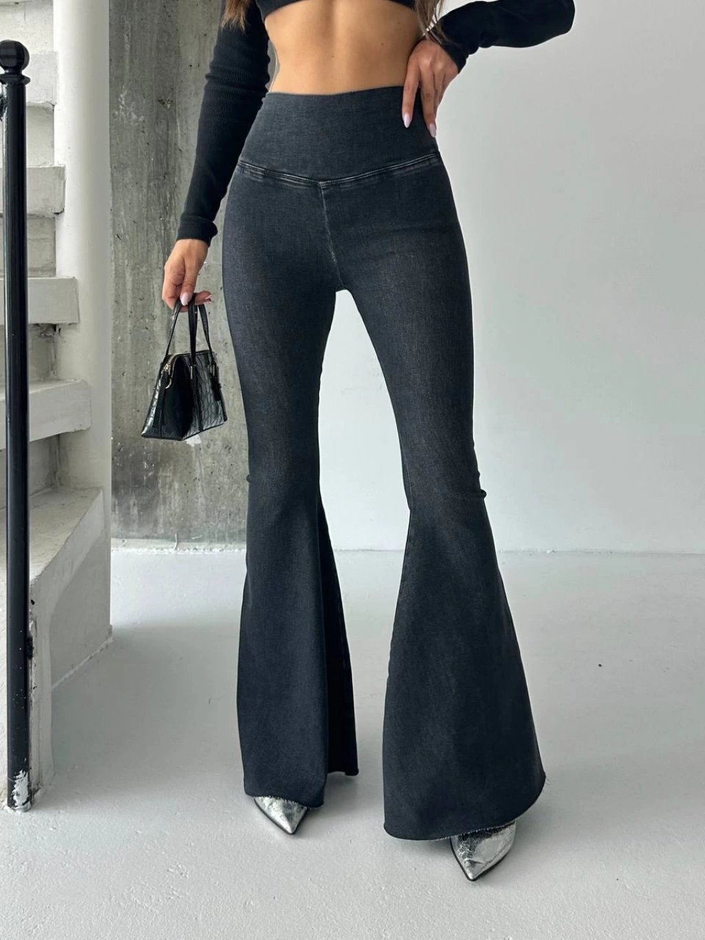• Modaskop Antrasit İspanyol Paça Yüksek Bel Jean Tayt, konforu ve şıklığı bir arada sunar.