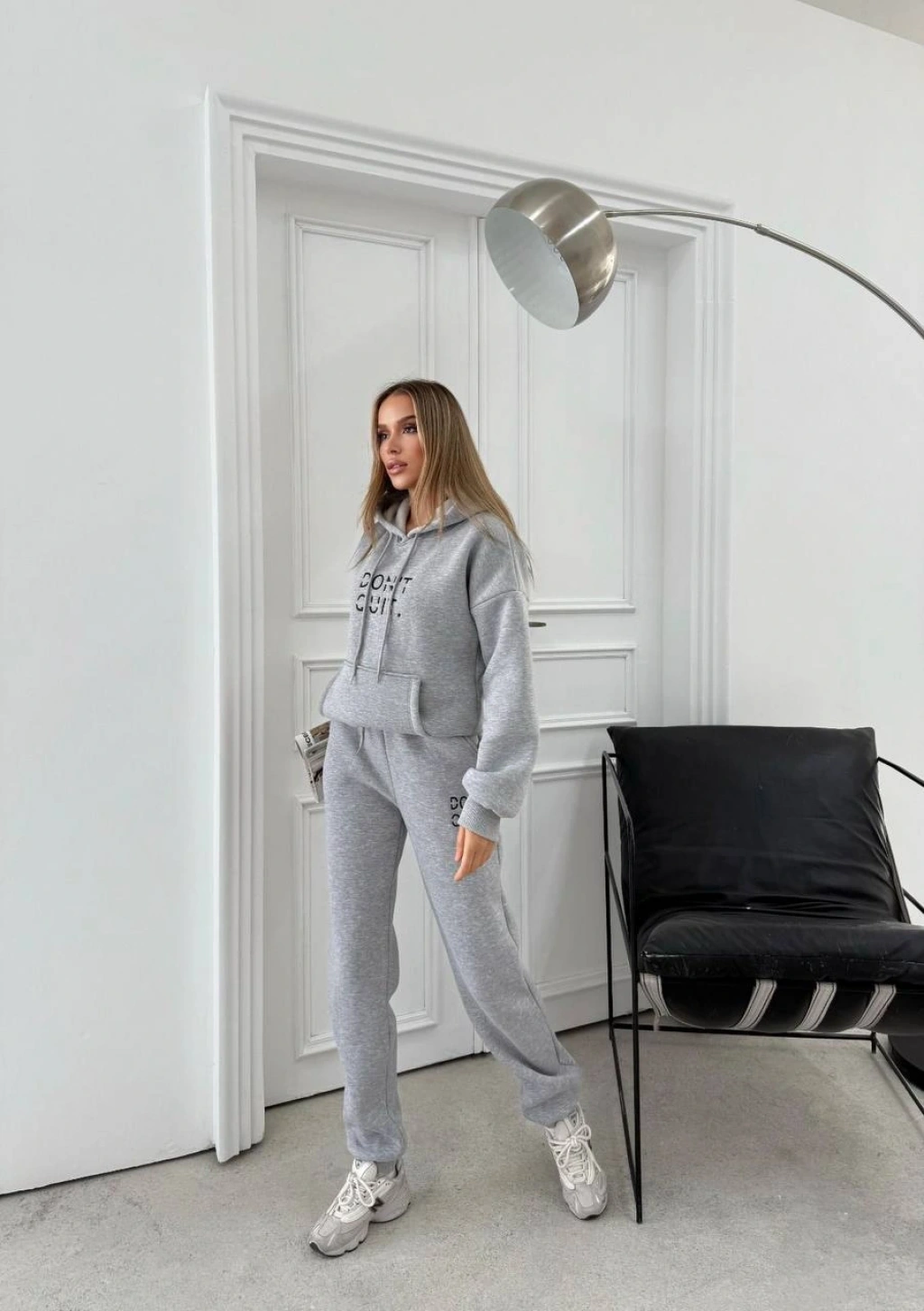 Gri Dont Quid Üç İplik Kapşonlu Eşofman Takımı