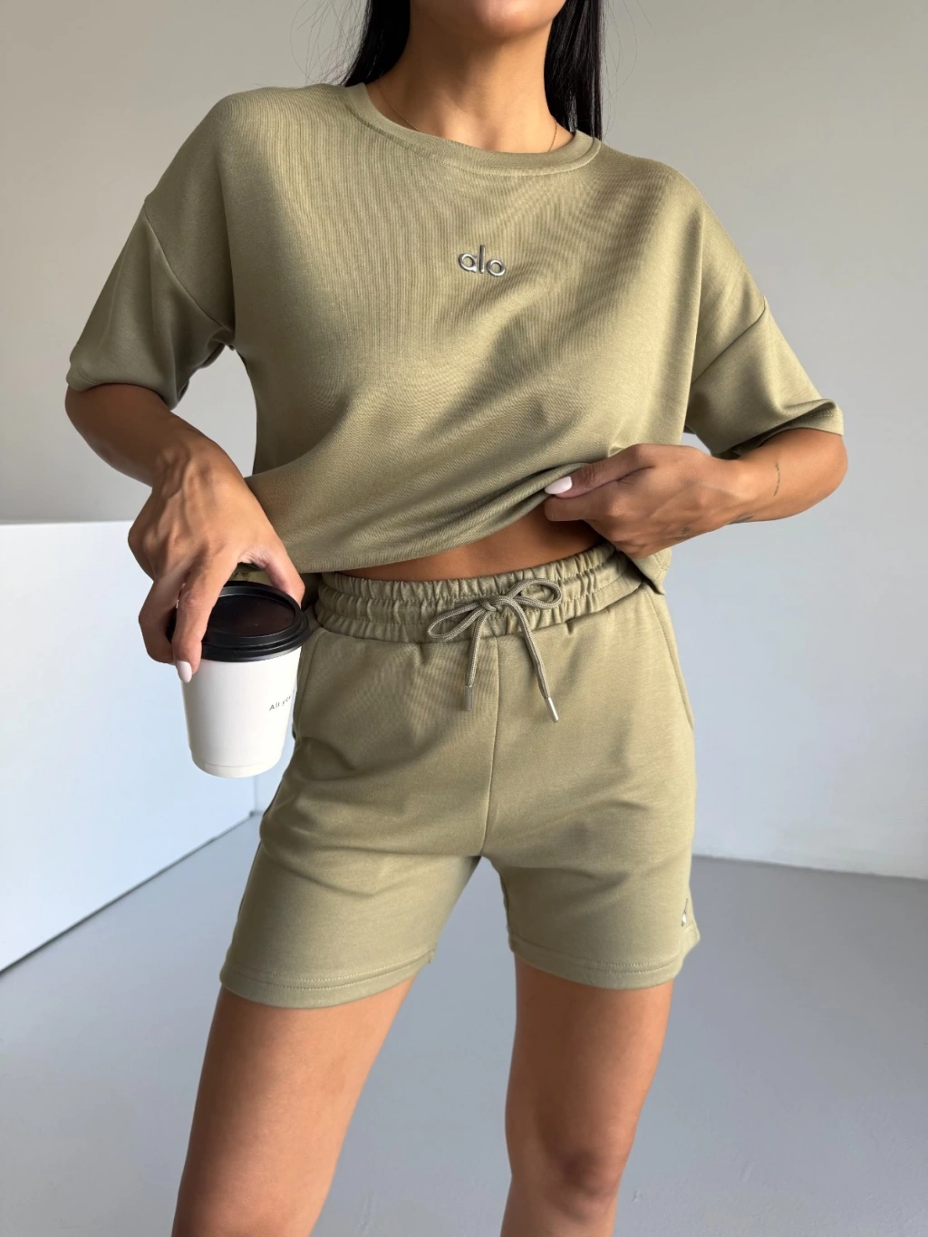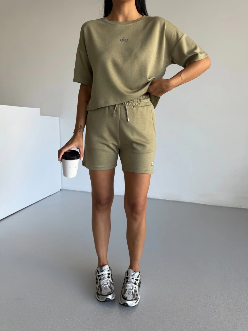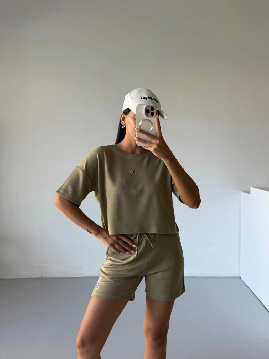 Haki Alo Yoga Modal Crop Şortlu Takım