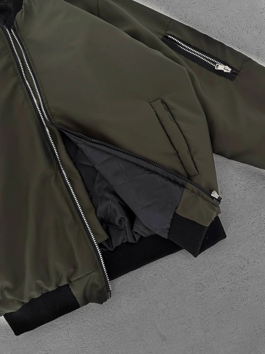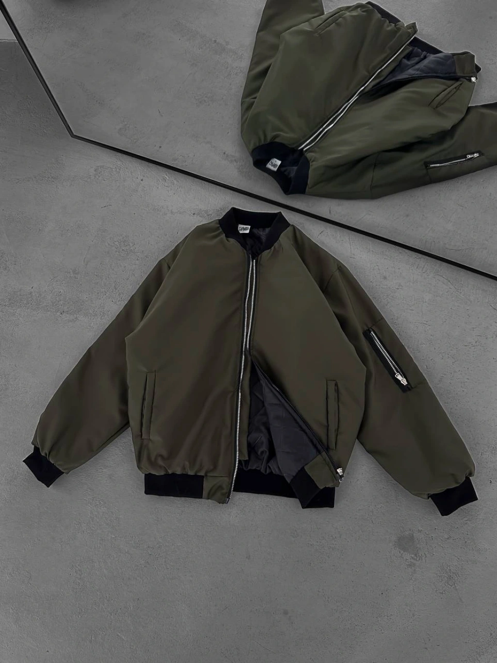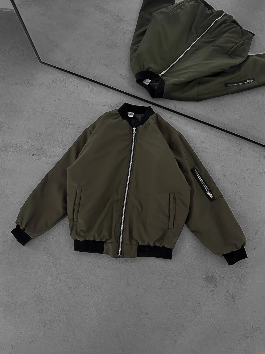 Modaskop Haki İçi Astarlı Bumber Ceket, şık ve sıcak tutan bir seçenek.
