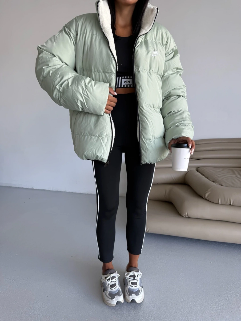 Modaskop Mint Yeşil NK Oversize Unisex Çift Taraflı Mont, tarzınıza şıklık katan bir seçenektir.
