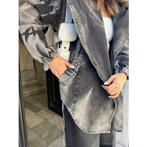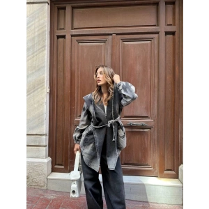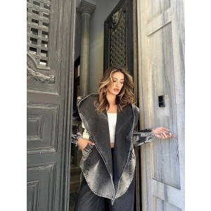 Antrasit Arkadan V Yırtmaç Kapşonlu Kot Mont