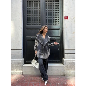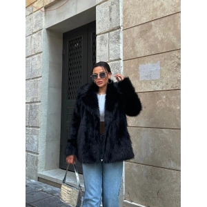 Siyah Nf Oversize Unisex Kıvırcık Kürklü Ceket