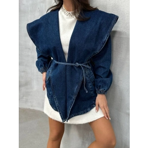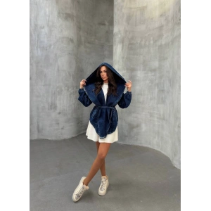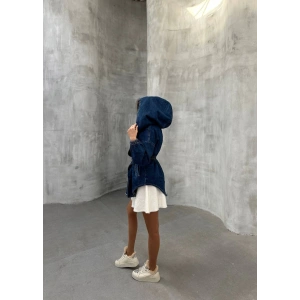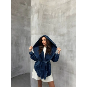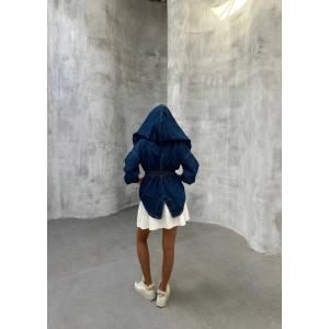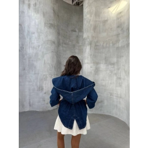 Mavi Arkadan V Yırtmaç Kapşonlu Kot Mont