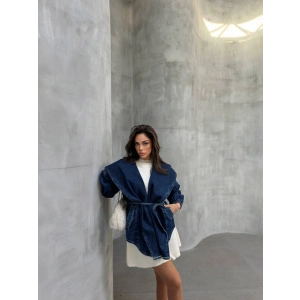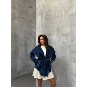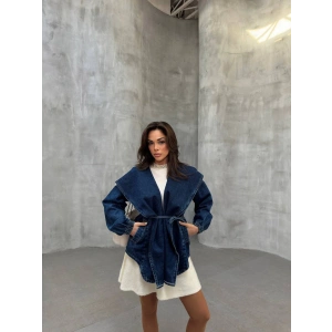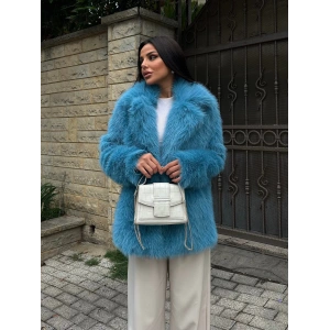 Mavi Şal Yaka İçi Astarlı Kürk Kaban