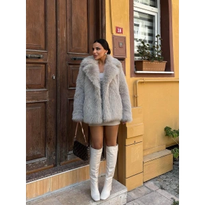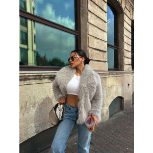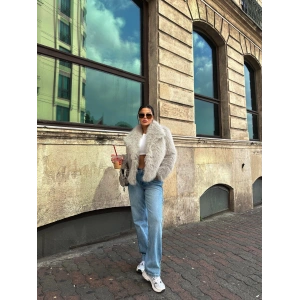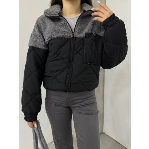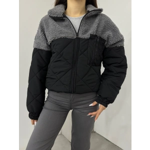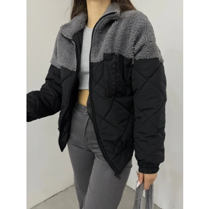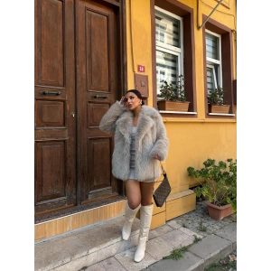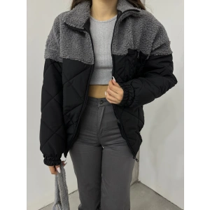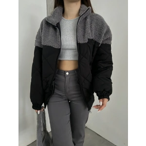 Gri Kapitone İçi Astarlı Kürklü Mont