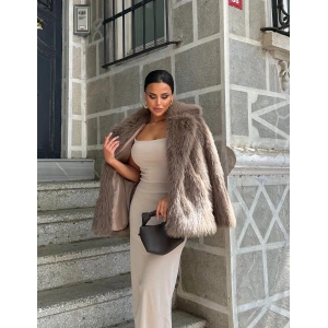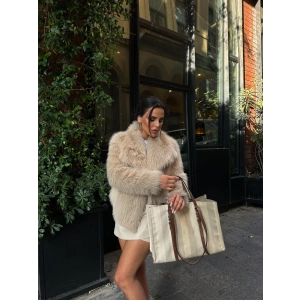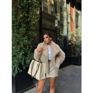 Bej Şal Yaka İçi Astarlı Kürk Kaban