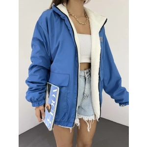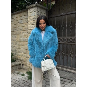 Mavi Çift Taraflı Giyilebilir Kürklü Mont
