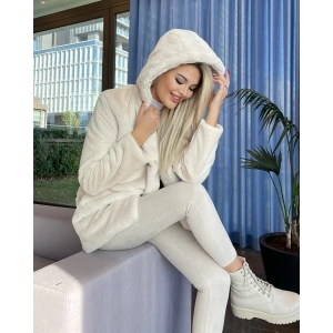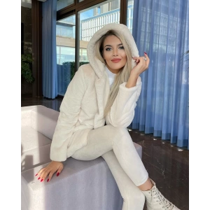 Krem Kapşonlu İçi Astarlı Rabbit Peluş Kaban