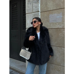 Siyah Çift Taraflı Giyilebilir Kürklü Mont