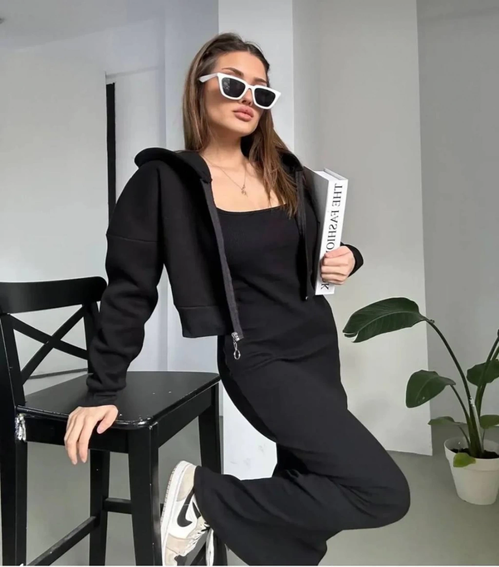Modaskop Siyah Sweat Elbise Kombini, şıklığı ve rahatlığı bir arada sunar.