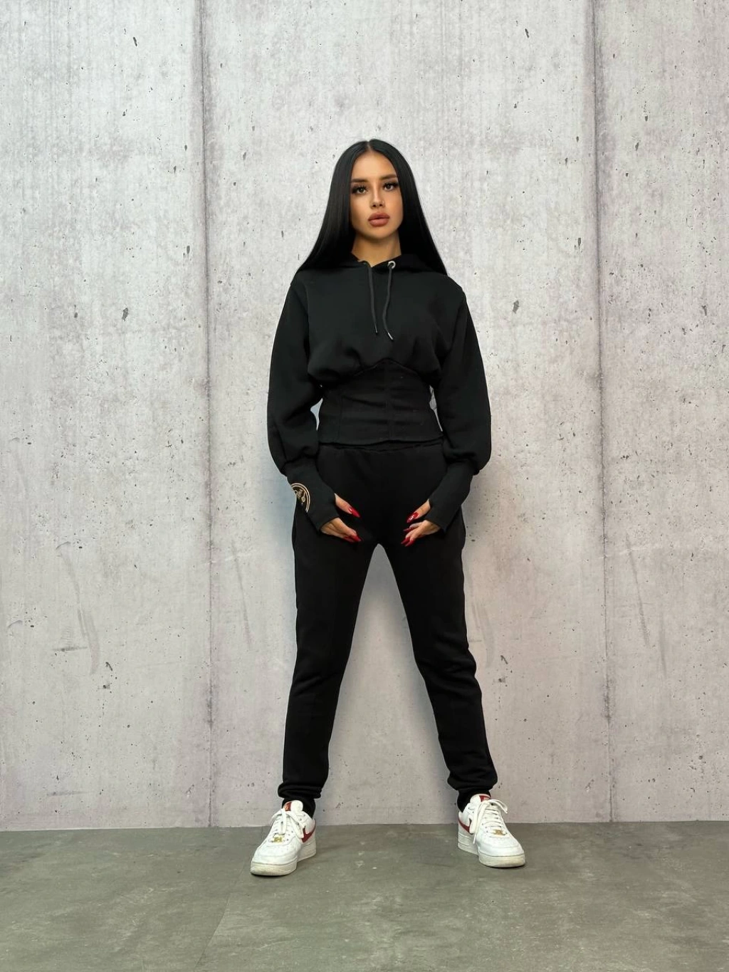 Siyah Dont Quid Üç İplik Kapşonlu Eşofman Takımı