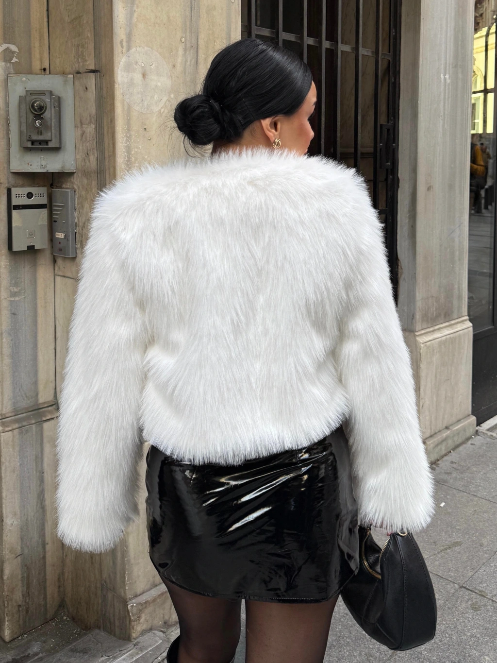 Beyaz Kapşonlu İçi Astarlı Rabbit Peluş Kaban