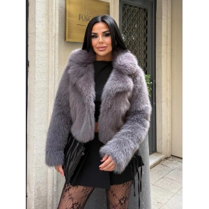 Modaskop Gri Leopar Düz Yaka Crop İthal Kürk ile stilinizi tamamlayın.