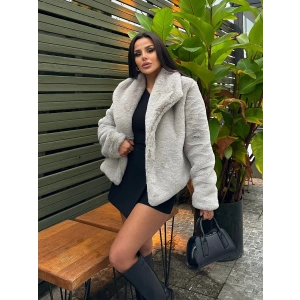 Gri Leopar Düz Yaka Crop İthal Kürk