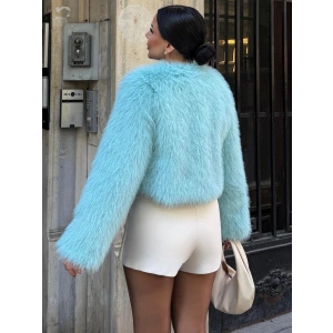 Bebe Mavi Düz Yaka Crop İthal Kürk
