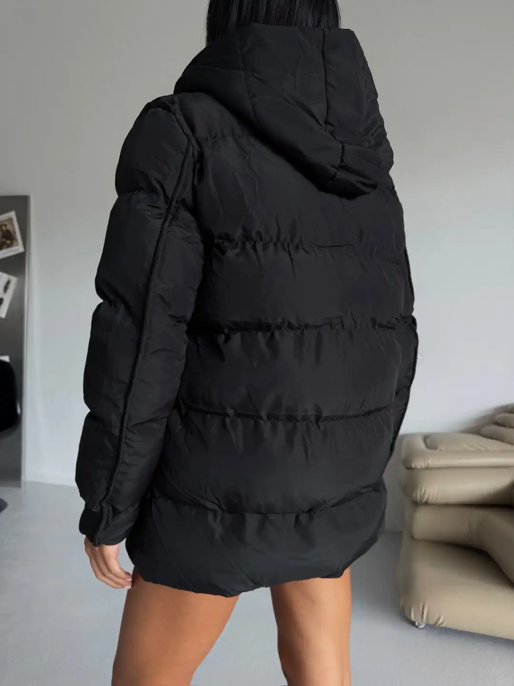 Modaskop Siyah Alo Oversize Kapşonlu Şişme Mont, sokak modasına şıklık ve rahatlık katıyor.
