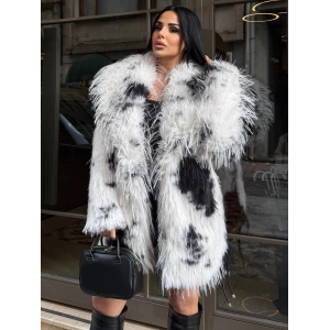 Beyaz Leopar Ceket Yaka İçi Satarlı Uzun İthal Kürk Kaban