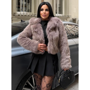 Gri Düz Yaka Crop İthal Kürk