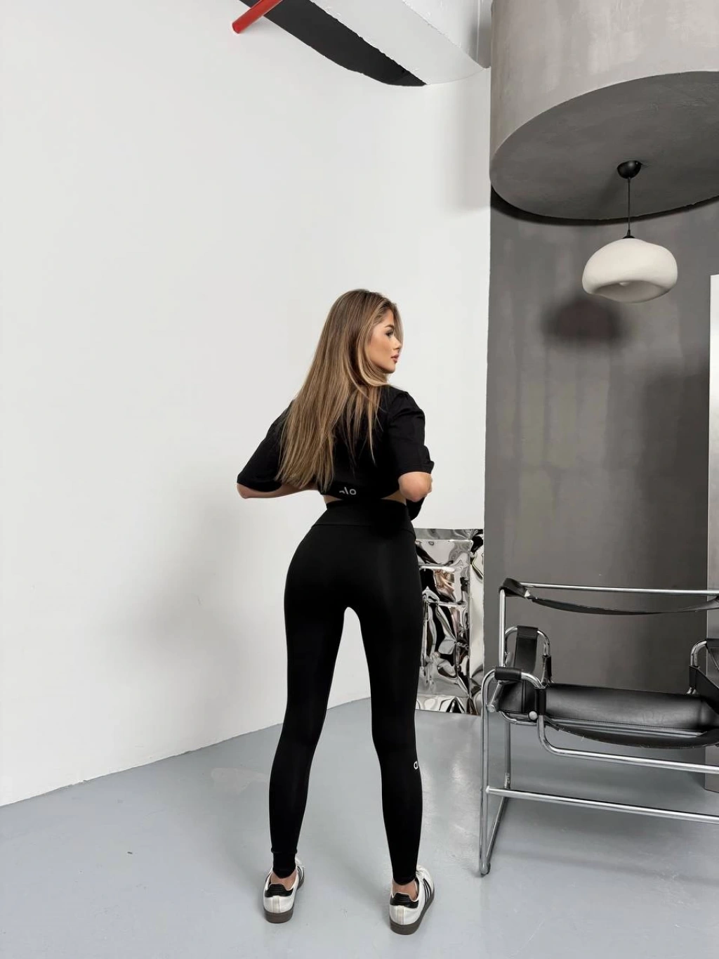 Siyah Alo Bilek Baskılı Sıkılaştırıcı Yüksek Bel Tayt