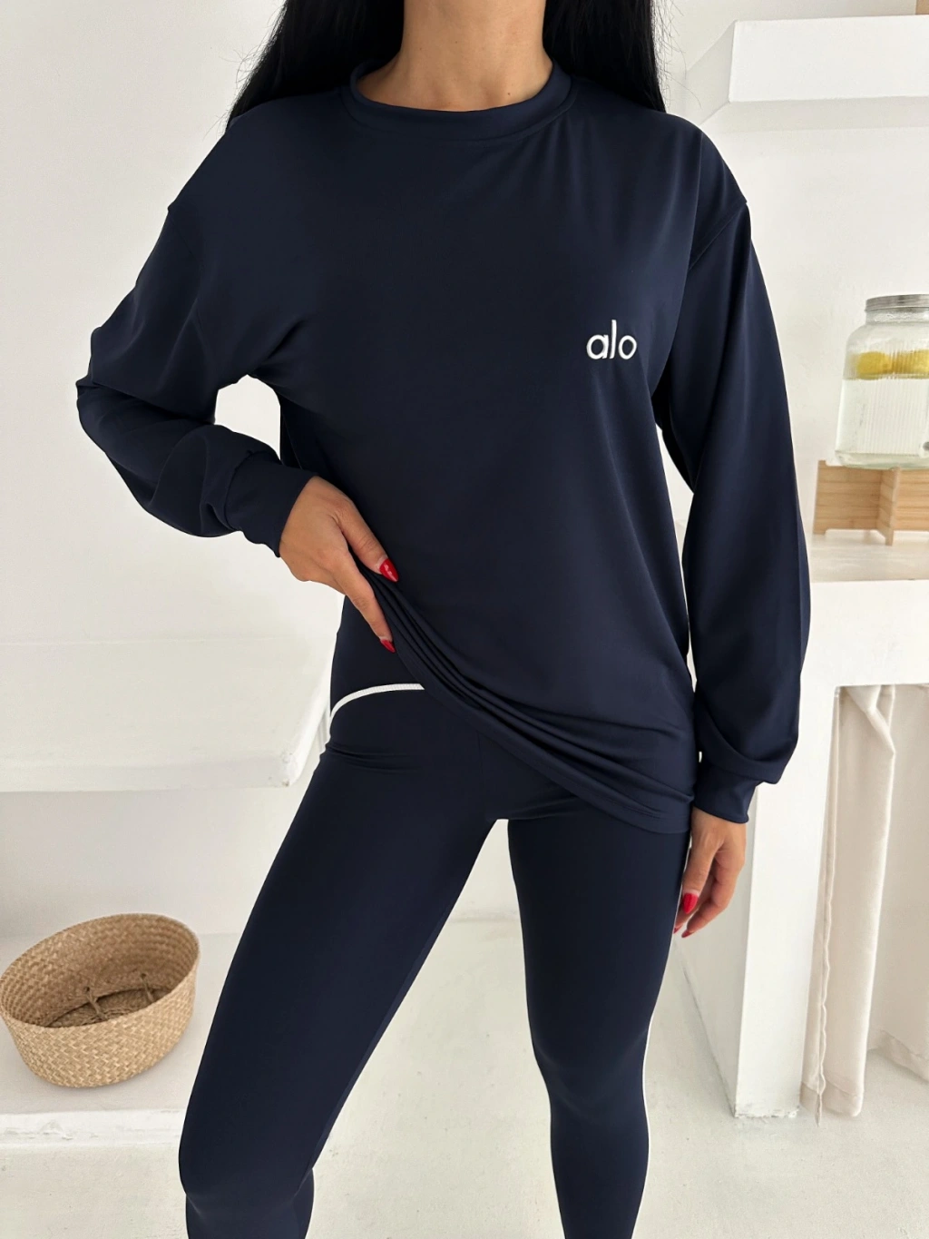 Modaskop Lacivert Arabiyeli Modal Taytlı Takım, şıklığı ve rahatlığı bir arada sunar.