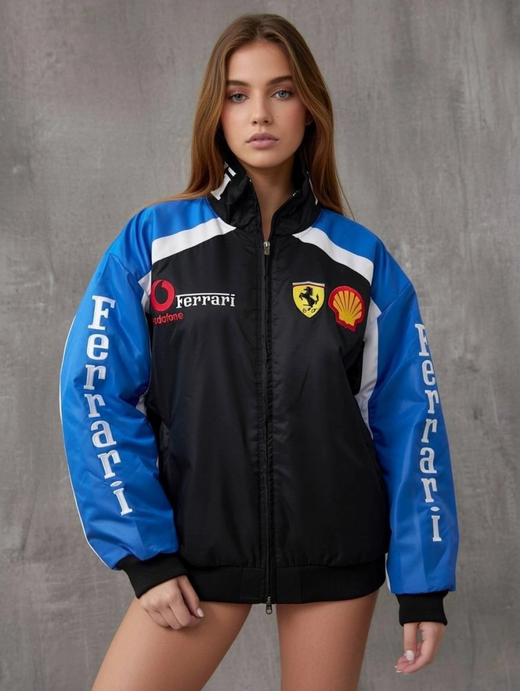 Mavi Ferrari İçi astarlı Unisex Bomber Ceket