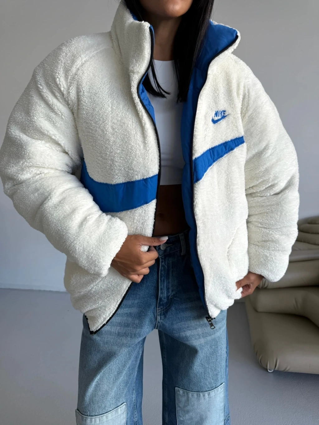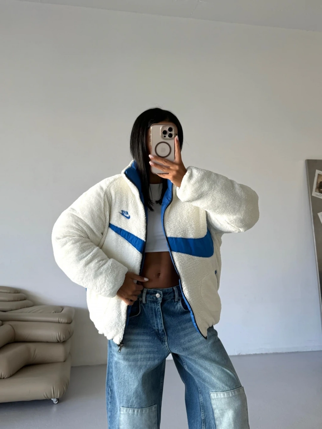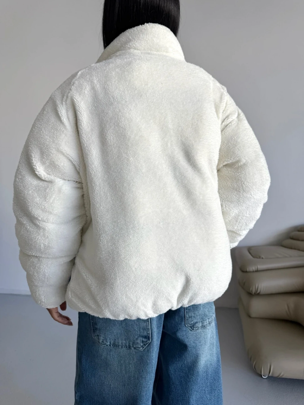 Beyaz Nf Oversize Unisex Kıvırcık Kürklü Ceket