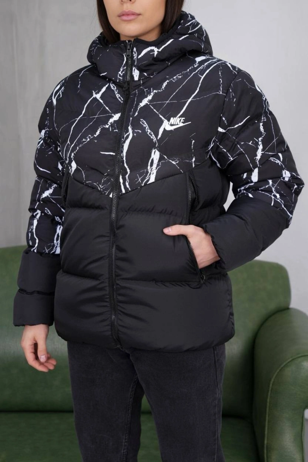 Mermer Desen NK Oversize Unisex Kapşonlu Şişme Mont