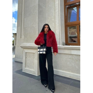 Bordo Düz Yaka Crop İthal Kürk