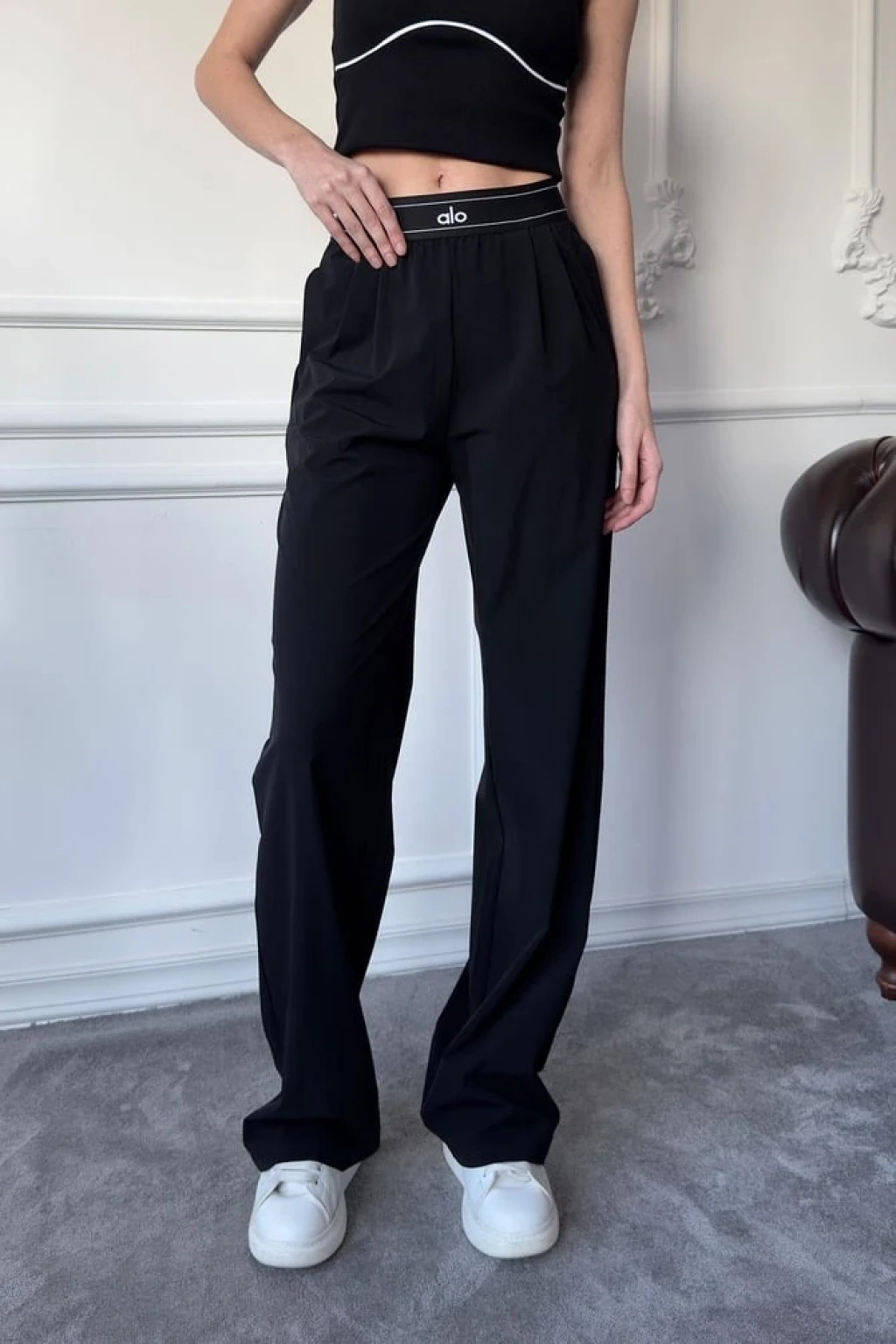 Modaskop Siyah Alo Lastik Ribana Pantolon, şıklığı ve rahatlığı bir arada sunar. Alt giyimde şıklığı yakalamak isteyenler için ideal bir seçim!