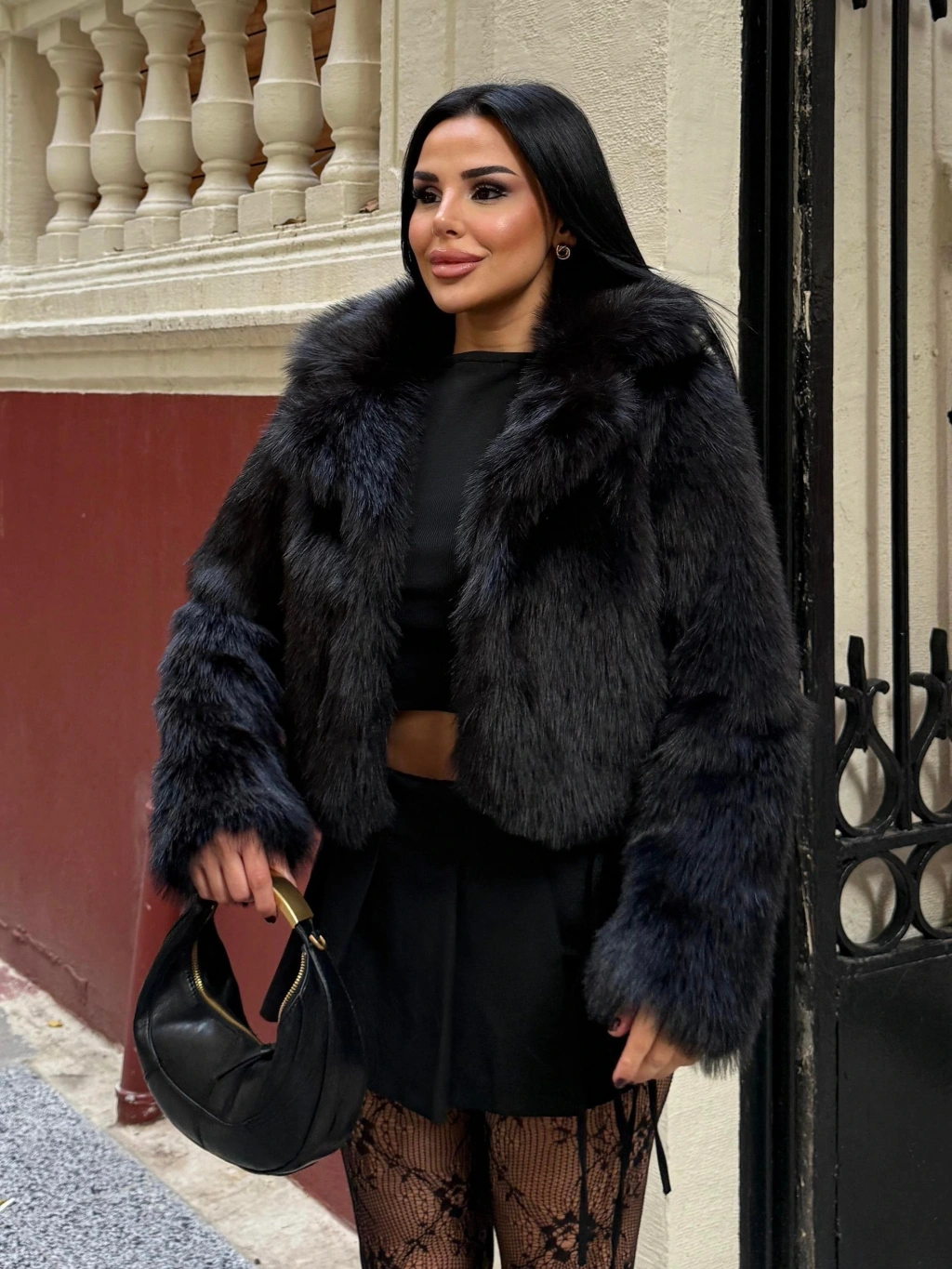 Modaskop Siyah Ceket Yaka Kısa İthal Kürk, şıklığı ve sıcaklığı bir arada sunar.