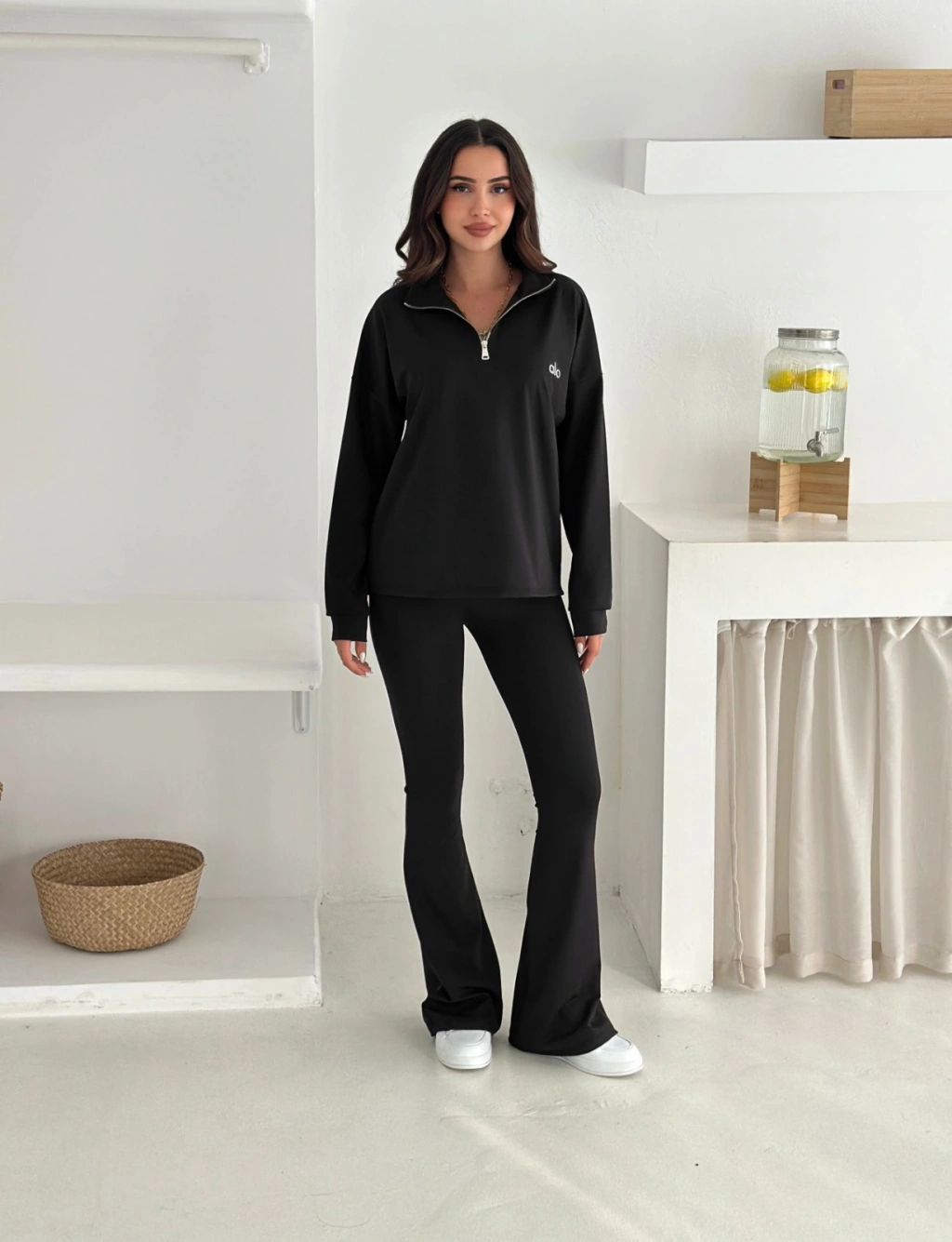 Siyah Alo Yırtmaçlı Modal İkili Takım