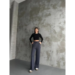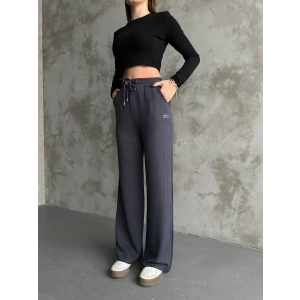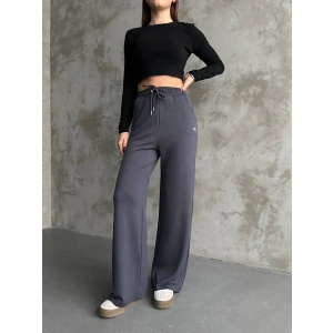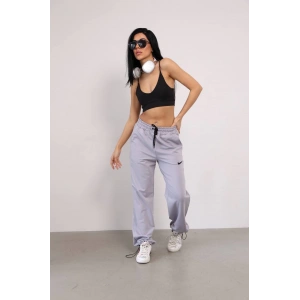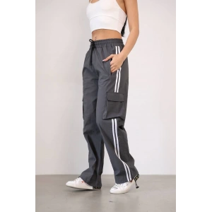 Antrasit Önden Üç Şerit Paça Cep Detay Paraşüt Eşofman