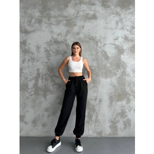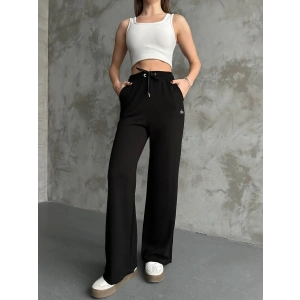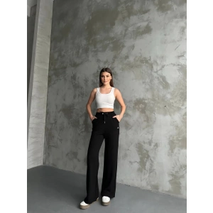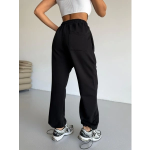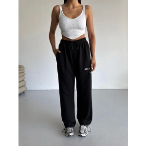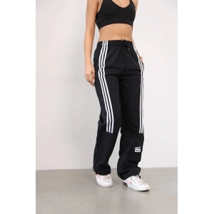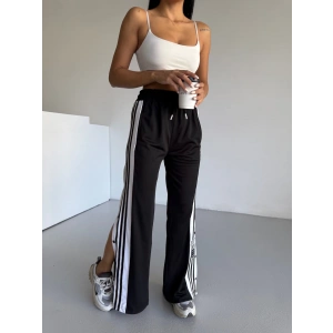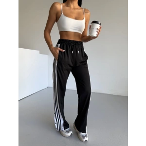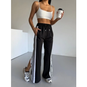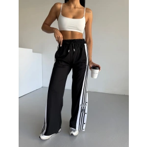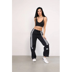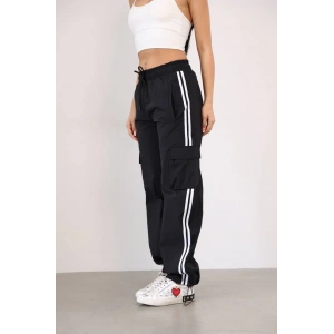 Siyah Önden Üç Şerit Paça Cep Detay Paraşüt Eşofman