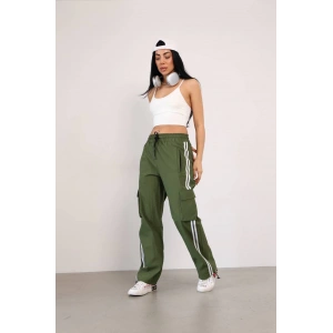 Haki Çift Şerit Kargo Cep Paraşüt Eşofman