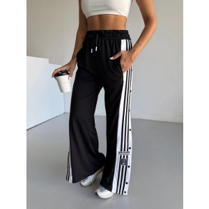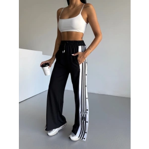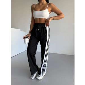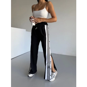 Siyah Çıt Çıt Detay Üç Şeritli Eşofman